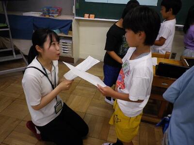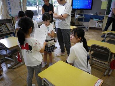 いよいよ子どもたちの番です。自分で書いた作文を相手に渡して読んでもらったあと、楽しそうにやりとりをしていました。