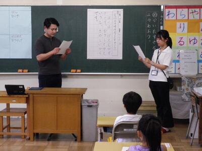 6月25日(水)に、皆川城東小学校1年生の教室で国語の「交流授業」が行われました。