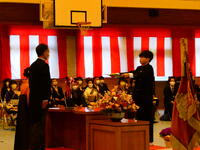 第76回卒業式 投稿日時 : 2023/03/15 皆川中2年① 3月13日(月)、本校体育館にて令和4年度第76回卒業式が挙行されました。 卒業生と在校生が対面する形で、フロア中央にステージを設置する皆川中ならではの卒業式です。 今年度は生徒会役員の代表生徒が司会進行役を務めるなど、新しい試みもありました。 式後の見送りは雨天のため、体育館での実施となりました。応援団による演舞披露とエールが送られた後、あたたかい拍手の中、卒業生29名がこの学び舎を巣立ちました。 なお、卒業式の模様はとちぎケーブルテレビで3月28日(火)22:00より放送されますので、ぜひご覧ください。 {{options.likeCount}} {{options.likeCount}}