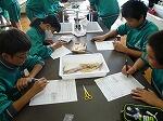 さらに細かく解剖し、えら、口、肝臓、墨袋、胃、心臓などを確認しました。
