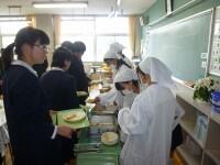今年度から、給食当番の生徒の健康チェックや服装チェックを強化し衛生面に配慮した、配膳を行っています。