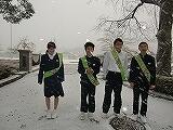 くださっています。また、皆さんが滑らないように、技能員の先生が消雪剤をまいてくれました。みんな無事登校してきて、ひと安心です