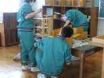 今日の1年生の3,4校時は、技術の授業でした。木工作品の製作中です。