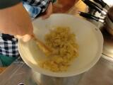 ふかしたサツマイモをつぶし、バターや牛乳でなめらかさを出します。