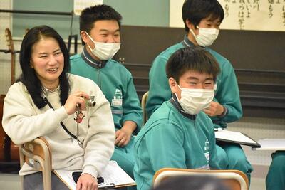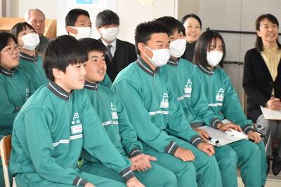 今年度、1、2年生は人数が少ないため、1年間、配膳から片付けまで共に給食の時間を過ごしてきました。小学校からずっと一緒の仲間たちで、違和感なく、仲良く給食の時間を過ごしています。最初の頃、卒業した3年生がとてもうらやましがっていたことを思い出しました。