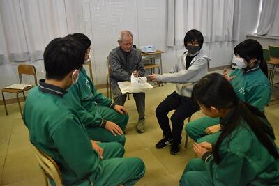 スライドを見た後は、1・2年生と教職員が5つのグループに分かれ、9つあるトピックのくじの中から引き当てたトピックについて、自分の思い出を語りました。トピックは、