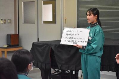 「私たちは、失敗を恐れず、自ら考え、表現することのすばらしさを知りました。そしてみなさんはそれができる生徒たちです。栃木北中ではもっとたくさんの仲間との出会いがあります。新しい仲間たちと、さらに素晴らしい学校を作ってください。」