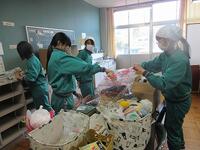 学校行事で使ったものが置かれている教室で、さまざまな荷物が残っていました。「あんなことあったね。」と懐かしみながらも、テキパキと清掃しました。