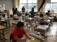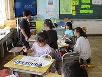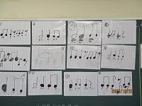 授業では、先生の示したリズムを選び、自分で書き写して、グループで順番を決め、けん盤ハーモニカで練習しました。最後にグループごとに発表しました。難しい課題だったと思いますが、どのグループもみんな素晴らしい演奏ができました。すごかったですね。