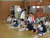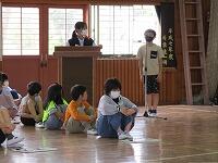 校長先生が「後出しじゃんけんで、校長先生に勝ってください。じゃんけんぽん!ぽん!」とじゃんけんを行い、勝ち残りゲームになりました。楽しいゲームで盛り上がった後、校長先生は、「じゃんけんだけでなく、生活していると負けてしまうことも失敗してしまうこともある。でもいろいろなことにチャレンジしていきましょう。」と話してくださいました。さあ、皆さんはどんなことにチャレンジしたいでしょうか。ぜひ、教えてくださいね。