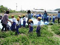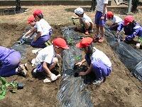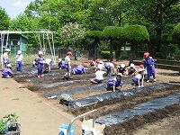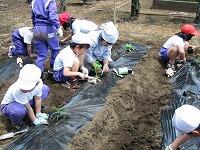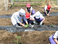 連休明けの好天に恵まれ、2年生が農園に野菜の苗を植えました。