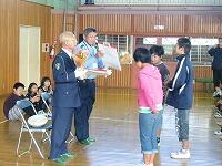 カレンダーの贈呈や歌のプレゼント、交通に関するクイズなどを行いました。