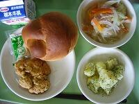 今日の献立は、ミルクパン、チキンなんばん、粉ふきいも、キャベツのスープ です。