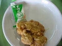 今日の献立は、ミルクパン、いか焼きそば、イモフライ、中華和えです。