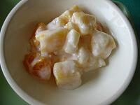 カレーには、大きなじゃがいもがたくさん入っていました。フルーツヨーグルトには、