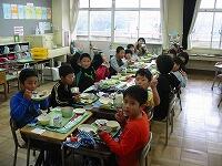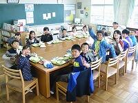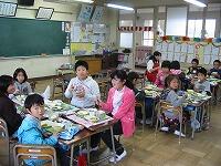 今日は、1年生から6年生まで全校縦割りの班で「なかよし給食」を実施しました。