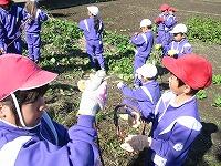 子ども達は、大きくなったサツマイモを掘りあて、「とれたー」と歓声を上げていました。