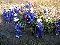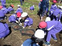 春に学校農園に植えたサツマイモを、1・2年生とひまわり学級が協力して掘りました。