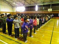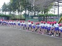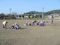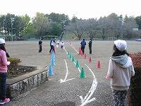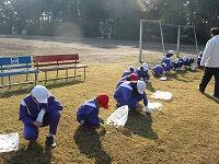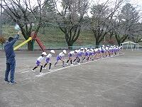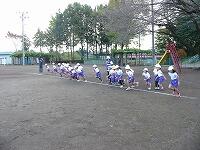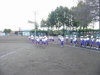 準備体操の様子です。 走るための準備をしています。