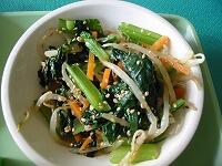 今日の献立は、ごはん、麦納豆、肉味噌煮、小松菜の梅かつおあえ です。