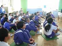 今朝は、保健・給食委員会の6年生が、2年生によいシャンプーの仕方を説明しました。
