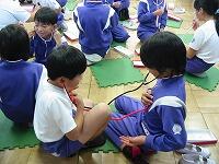 子ども達は、DVDを一生懸命見たり、聴診器で自分の心臓の音を聞いたりしました。