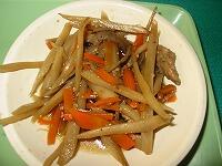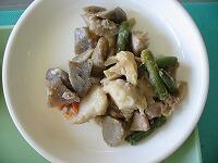 今日の献立は、ごはん、鶏肉のねぎ味噌焼き、五目きんぴら、すまし汁 です。