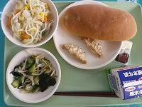 今日の献立は、コッペパン、塩ラーメン、揚げぎょうざ、和風サラダ です。