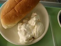 今日の献立は、ホットドック、海そうサラダ、あさりのチャウダー です。
