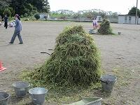 子どもたちは、みんなで協力して草をぬいたり、運んだりして、あっという間に一輪車が見えなくなるほどたくさんの草を集めました。さて、優勝したのはどのチームだったでしょう?ほんとうによく働く皆川城東小の子どもたち。先生はみんな優勝!だと思いました。お疲れ様でした。ありがとう。