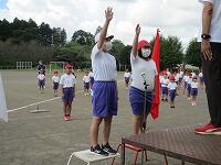 朝は、全校児童が集まり、体育主任の先生の指導で、開会式の隊形を作ったり、リズムジャンプ体操の練習をしたりしました。紅組白組の代表児童の運動会への意気込みも聞かせてもらうことができました。「楽しく」「本気で」という素敵な言葉を聞くことができました。全体での練習は今日が初めてでしたが、気をつけの姿勢も体操もみんなよくできていました。