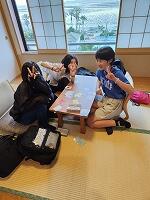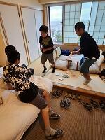ホテルでの夕食、自由時間の様子です。バイキングの夕食はみんな(児童も先生も)、お腹いっぱい食べました。自由時間は、友達との楽しいひとときを過ごしました。就寝するまで、まだまだ楽しみが続きそうです。