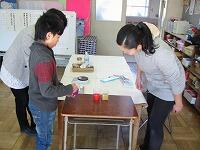 続いて竹とんぼ作りに挑戦。羽の部分は難しいので軸の部分を鉛筆同様に削ります。そして体育館で飛ばしてみましょう。うまく飛ぶかな?