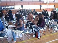 カルタとり、あやとり、など、たっぷり遊んでもらいました。時には、中学生のおにいさんおねえさんに教えてあげる姿も。