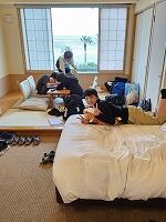 ホテルでの夕食、自由時間の様子です。バイキングの夕食はみんな(児童も先生も)、お腹いっぱい食べました。自由時間は、友達との楽しいひとときを過ごしました。就寝するまで、まだまだ楽しみが続きそうです。