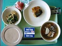 ごはん、とりの照り焼き、磯香和え、豚汁、レモンタルトです。