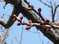 学校内にある梅の木に、つぼみがたくさんつきました。