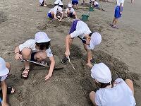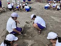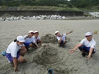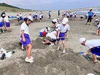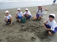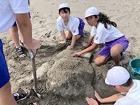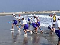 じりじりと過酷な暑さの中、絶え間なく涼を届けてくれる海風に支えられながら、砂浜活動をしました。