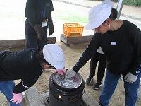 塩づくり。班の代表が海水を汲みに行っている間に、かまどの準備。ほぼ順調に火が付いたら、炎の勢いに気を付けつつ、海水の具合をじっくり観察。蒸発の様子に合わせて、ゴミ取りやスプーンで塩集め。そして、世界にたった一つの手作り塩のお土産ができました。(最後までじっくり頑張った3班の活動から、海水の変化の様子をご覧ください。)