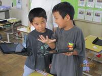 今日の算数の授業では、野菜を整理して数を数える学習をしました。タブレットを使用し、かごにばらばらに乗せられていた野菜を指で動かして、種類ごとに整理することができました。縦にそろえる児童もいれば、横にそろえる児童もいて、ななめにそろえる児童もいました。そして、友達との交流を通して、より見やすく、数えやすい整理の仕方を考えていました。