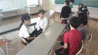 総合「幸せなまちづくり」のために、「すべての人の幸せ」を考え、今回はアイマスク体験をしました。目の不自由な方、介助人、第3者(二人を見る人)となって体験しました。「自分で目をつぶるのとは違っていて怖かった。」「ガイドしてくれる人がいて助かった。」「うまく介助しないと危ないから怖かった。」などいろいろな思いを抱くことができました。
