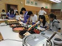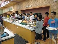 そして、待ちに待った夕食です。たくさんのバイキング料理。どれを食べるか、またまた迷いながら、「いただきまーす。」お腹いっぱいになりました。