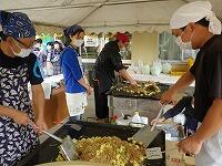 室内では、うどんにカレー、パンやケーキ、チョコバナナやアイスの販売が行われ、熱気にあふれていました。