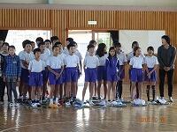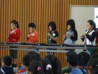演奏の途中のワークショップでは、児童代表と関口先生がステージに上がって、「彩」のみなさんのリズムにあわせて演奏したり、全校生の手拍子で演奏したり、とても楽しいひとときを過ごしました。