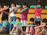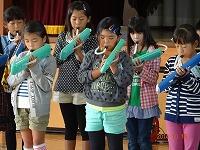 学年の発表は、1年生と4年生。1年生は鍵盤ハーモニカで「きらきら星」の演奏をしました。リズムに合わせて、とてもきれいな音が出ていました。