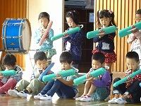 長胴太鼓、担ぎ太鼓などいろいろな大きさ・形の太鼓から出る力強い音と、篠笛のすてきな音色が響きました。