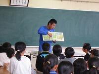 まずは、図工室で顔合わせを行い、全体での読み聞かせからスタート!