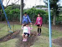 校庭での「くつ飛ばし」「ブランコや遊具遊び」など、支援学校のみなさんが楽しめる活動を考えて、優しく教える5年生の姿が見られました。