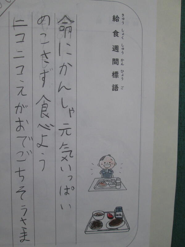 学校給食週間は、給食の歴史を振り返り、今の給食について考え、自分たちの食生活についても見直そうというねらいがあります。本校における取組をご紹介します