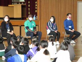 5,6年生は普段の外国語の授業をスペシャルバージョンで行い、1~4年生は、ALTの先生方の出身国の文化を体験しました。とても楽しい1日でした。